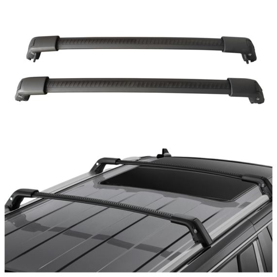 Deben ser barras laterales separadas del techo de tu vehículo. Se anclan en las barras laterales de tu auto. La distancia entre barras laterales tiene que ser menor a 125 cms.